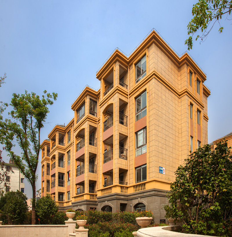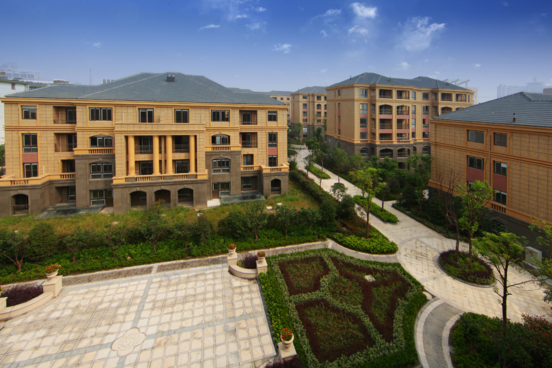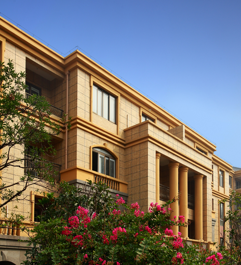攬?jiān)潞劳フ麄€(gè)建筑文化全面融入法式建筑元素,軸線對(duì)稱的外立面,端正嚴(yán)謹(jǐn)、不事張揚(yáng)的建筑風(fēng)格,粗柱廊、厚山花、高臺(tái)階等建筑細(xì)節(jié)裝飾,形成了尊貴、氣度雍容的建筑語(yǔ)言。 小區(qū)以軸線交點(diǎn)的中心廣場(chǎng)統(tǒng)領(lǐng)全局,通過(guò)對(duì)古典元素的運(yùn)用,如花缽、水景、樹(shù)陣的引導(dǎo),身在其中有強(qiáng)烈的序列感,深切的表達(dá)了園林南秀北雄的園林藝術(shù)風(fēng)格。