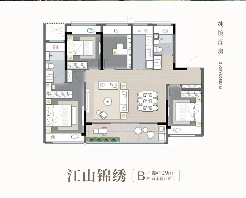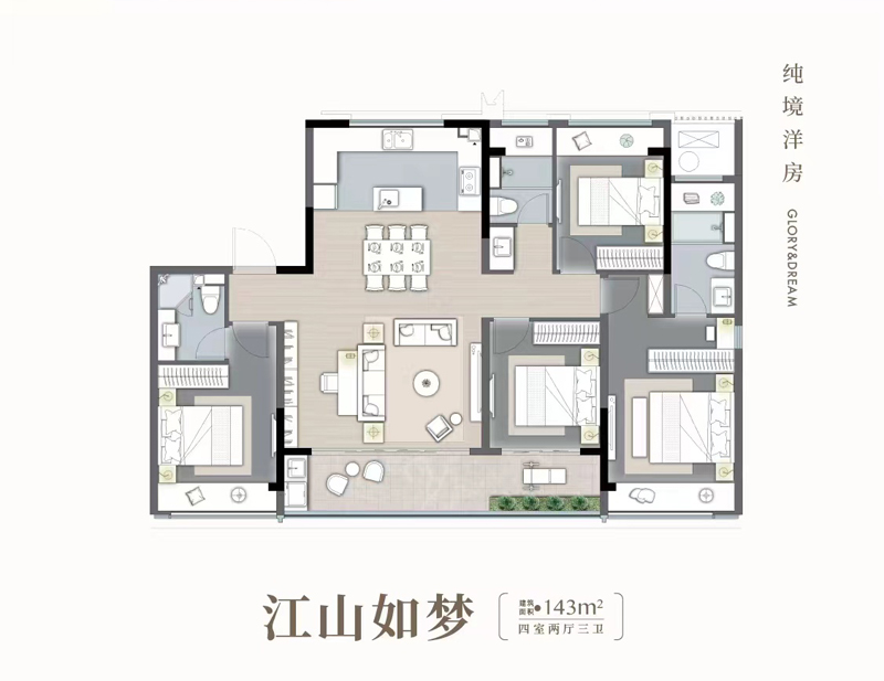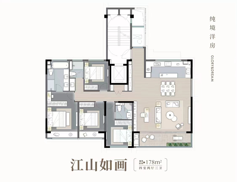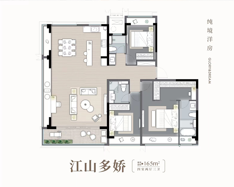 領(lǐng)創(chuàng)揚州戶型設(shè)計典范、精著洋房,獨立玄關(guān),巨幕無柱寬廳,LDK一體化規(guī)制,縱享270°環(huán)幕觀景視野(建筑面積約165㎡戶型),每一眼皆讓人心懷澎湃。