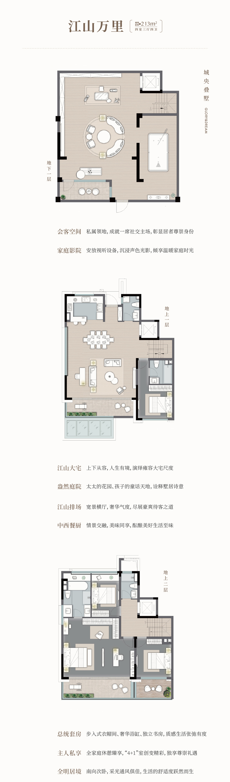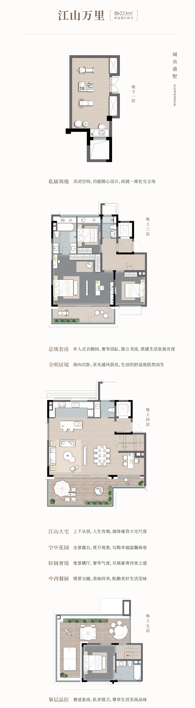 項目以「1.5低容積率」低密大境,規(guī)劃洋房(建面約109-216㎡)、疊加別墅(建面約213-233㎡)兩類產(chǎn)品,墅造全新居住境界,低層業(yè)態(tài)配有私家庭院,公共空間以江山畫境為魂,打造沉穩(wěn)渾厚、磅礴大氣的儒門禮序,構(gòu)建人景融合、居游一體的 “江山十境”規(guī)制,創(chuàng)造一個詩意居住、人文共榮、生活機能與精神棲居完美相融的東方意境。