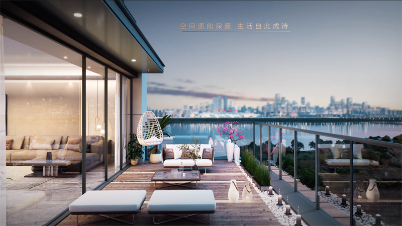窗墻比越高,室內(nèi)越通透明亮,當(dāng)前住宅窗墻比一般為0.25-0.35,而江山映做到了0.51,窗線比更是做到1:0.62的黃金比例,清透的巨幕玻璃以及柔邊鋁翼等設(shè)計,建筑靈動、通透,當(dāng)蔚藍(lán)的天空倒影其上,宛若立體海洋,又與天空融為一體。