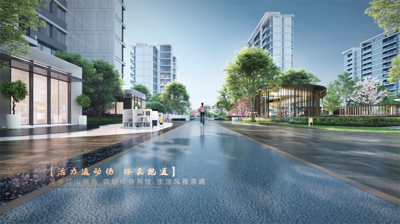 環(huán)繞整個項目設(shè)有森林健康慢跑系統(tǒng),打造運動休閑的森居景觀慢跑道,實現(xiàn)了環(huán)道對全園功能的連接。