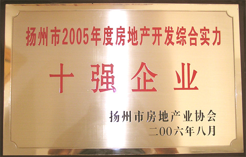 2006年8月17日,揚(yáng)州市房產(chǎn)管理局、揚(yáng)州市房地產(chǎn)業(yè)協(xié)會(huì)在揚(yáng)州天地大酒店舉行了2005年度揚(yáng)州市房地產(chǎn)開(kāi)發(fā)綜合實(shí)力10強(qiáng);企業(yè)授牌儀式,集團(tuán)公司名列10強(qiáng);榜首,再拔頭籌。