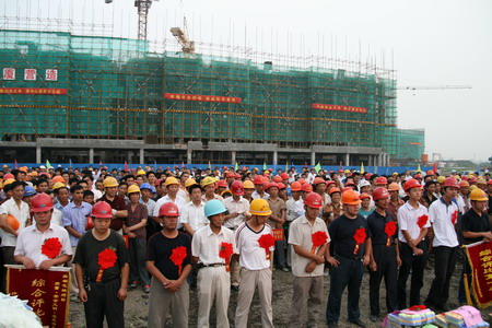 8月6日下午,和美第工地現(xiàn)場彩旗飄揚(yáng),人頭簇?fù)?,新能源集團(tuán)和美第、奧都花城、公元國際大廈工程質(zhì)量評(píng)比表彰大會(huì)隆重召開。新能源集團(tuán)董事長包廣林、新能源虎豹房屋開發(fā)有限責(zé)任公司總裁顧載兵等公司領(lǐng)導(dǎo)出席了表彰會(huì)。