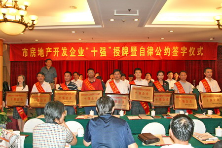 2006年度揚州房地產(chǎn)開發(fā)綜合實力十強企業(yè)新鮮出爐;。江蘇新能源置業(yè)集團有限公司再度榮獲十強之一。集團公司張有龍總監(jiān)出席了頒獎儀式,并參加了揚州房地產(chǎn)開發(fā)綜合實力自律公約的簽約活動。