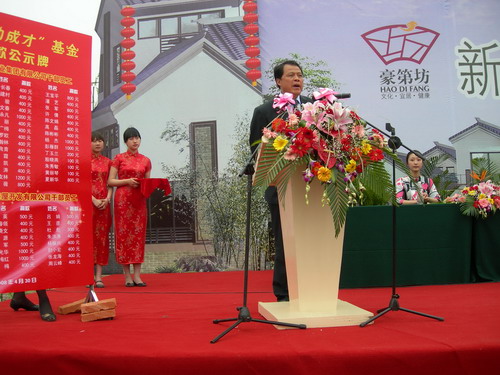4月30日,新能源;又推新項目,位于儀征新集鎮(zhèn)的豪第坊;項目舉行開工奠基儀式。 豪第坊;項目占地近480畝,是由獨棟別墅、聯(lián)排別墅、情景洋房、沿河觀景洋房等多種建筑形態(tài)組成的高品位大型社區(qū)。豪第坊;項目將把漢文化、鹽商文化和農(nóng)耕文化進行提取和糅合,深度詮釋骨子里的揚州;這一核心理念。今年國慶節(jié)期間該樓盤將上市銷售。同時,豪第坊;項目形象代言人楊婧小姐,將項目代言費2萬元捐給揚大管理學院,江蘇新能源置業(yè)集團公司與揚州新能源虎豹房屋開發(fā)有限公司的干部職工也向揚大捐獻了9.2萬元的愛心助成才;基金。