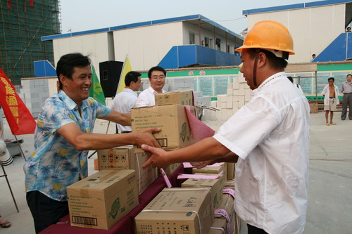 當(dāng)業(yè)主們熱情的向工人師傅們發(fā)放慰問(wèn)品的時(shí)候,現(xiàn)場(chǎng)氣氛達(dá)到高潮?,F(xiàn)場(chǎng)的工人們說(shuō):以前只有單位領(lǐng)導(dǎo)來(lái)慰問(wèn),業(yè)主還從來(lái)沒(méi)有過(guò),這說(shuō)明新能源確實(shí)受業(yè)主歡迎,這也讓我們意識(shí)到自己的崗位雖小,但是責(zé)任很大!我們只有把工作做好才能對(duì)得起業(yè)主。一位施工單位負(fù)責(zé)人表示:業(yè)主慰問(wèn)對(duì)我們是一種鼓舞也是一種壓力,我們更要把質(zhì)量放在心上,以一流的住宅回報(bào)業(yè)主!