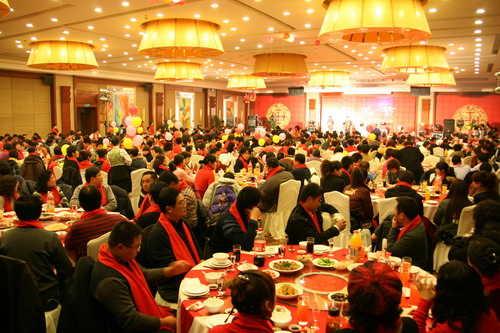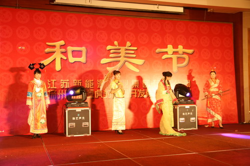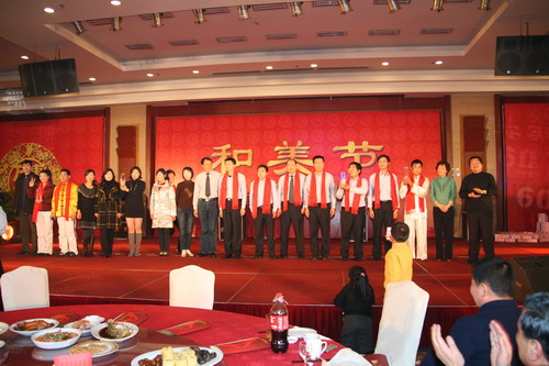 2009年1月21日下午5時30分,新能源集團(tuán)公司、泰興分公司、新能源虎豹公司和新能源物業(yè)公司的全體干部員工及其家屬,還有應(yīng)邀而來的嘉賓共約五百人,個個披著大紅色的羊絨圍巾走進(jìn)了富麗堂皇、流光溢彩的新世紀(jì)大酒店世紀(jì)廳,剎那間,大廳里一片生機(jī)盎然,充滿了青春似火的氣息,新能源第三屆和美節(jié);在這里隆重舉行。