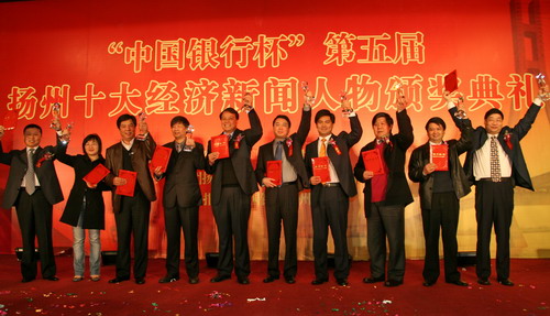 一年一度的十大經(jīng)濟新聞人物;評選,堪稱揚州經(jīng)濟奧斯卡;。 3月17日,由揚州市經(jīng)貿(mào)委、揚州日報社主辦,團市委、揚州晚報、揚大經(jīng)濟學(xué)院承辦的中國銀行杯;揚州十大經(jīng)濟新聞人物;頒獎典禮在迎賓館隆重舉行。市委常委、宣傳部長袁秋年,市人大常委會副主任孫永如,副市長王玉新,市政協(xié)副主席朱正海出席頒獎典禮。
