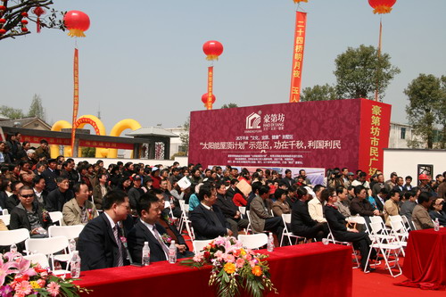 豪第坊項目是由揚州新能源虎豹房屋開發(fā)有限公司投資建設,項目位于揚州西郊新集鎮(zhèn),占地近500畝,是一個由獨棟、聯(lián)排、疊加、情景洋房、沿河觀景洋房等多種建筑形態(tài)組成的現代中式高品位大型文化休閑居住區(qū)。小區(qū)提煉了揚州中式園林特色、皖南村落特色、現代主義建筑風格,并把揚州的漢文化、鹽商文化和勞動文化進行提取和糅合,深度詮釋骨子里的揚州;這一開發(fā)理念。項目文化氣息濃郁、園林設計特色鮮明、建筑形態(tài)與風格獨具匠心,在戶型上首度演繹內庭院;概念,擁有獨特的水系景觀、擁有五星級服務的養(yǎng)生會館、休閑娛樂、購物、健康和運動等配套。據介紹,豪第坊項目在揚州開創(chuàng)了多項第一;,如采用了太陽能屋頂計劃示范的規(guī)模第一,且是首個在揚州推廣木結構環(huán)保房屋的項目。