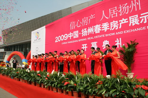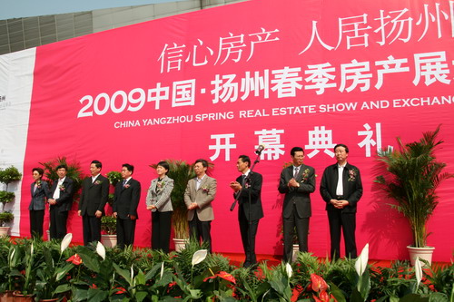 4月30日上午9點(diǎn)18分,2009中國 揚(yáng)州春季房產(chǎn)展示交易會(huì)開幕式在國展中心隆重舉行。揚(yáng)州市委副書記、市長王燕文,國家住房和城鄉(xiāng)建設(shè)部房地產(chǎn)市場監(jiān)管司張小宏副司長,市委常委、市政府張愛軍常務(wù)副市長,市委常委、宣傳部部長袁秋年,市人大高瑞芹副主任,市政協(xié)朱正海副主席,市政府何金發(fā)秘書長,市人大環(huán)資城建工委宋建國主任,市政協(xié)城鄉(xiāng)委周國生主任,市房產(chǎn)管理局局長楊學(xué)華,市廣電總臺(tái)徐麗玲臺(tái)長出席開幕式,市政府副秘書長王炳松主持開幕式。
