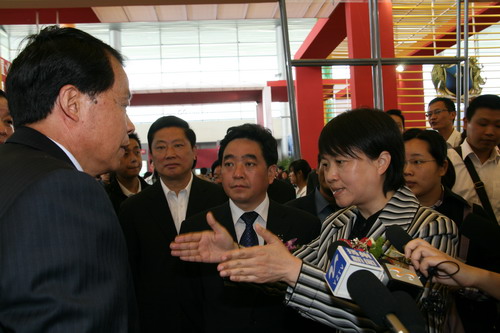王燕文市長蒞臨新能源花樣年華項(xiàng)目展位與包廣林親切交談