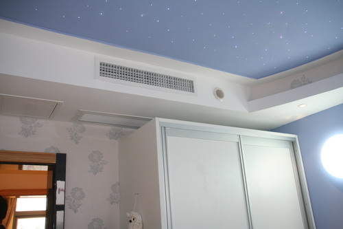 在陽光美第的樣板房內(nèi),我們在各個房間來回走動,感受到溫度非常平衡,人也感到非常舒適。室溫穩(wěn)定在18-20℃,據(jù)工作人員介紹,這樣的溫度一方面可以節(jié)約能源,減少電力損耗,一方面可以降低室內(nèi)外溫差,在保證舒適度的前提下盡可能避免由于內(nèi)外溫差過大可能給人體帶來的不良影響。在每套住宅的各個房間內(nèi)都有出風(fēng)口、回風(fēng)口,相當(dāng)于各個房間都安裝了獨(dú)立空調(diào),溫度可以根據(jù)自己需要自行調(diào)節(jié),不使用時也可以關(guān)閉,非常方便。出風(fēng)口、回風(fēng)口隱藏在天花板上,不占空間、不礙視線,如果不出門,渾然不知窗外已是白雪紛飛的冬日。真有桃花源中不知有漢、無論魏晉;的意趣呢!