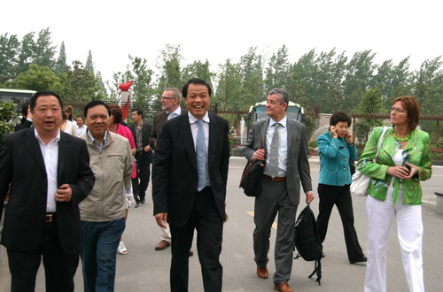2010年5月16日下午,來(lái)自比利時(shí)王國(guó)林堡省省長(zhǎng)哈曼任德斯、布瑞市市長(zhǎng)雅克嘉布里埃爾一行的30多名友人在參加完世博會(huì)比利時(shí)館開(kāi)館儀式以后,即來(lái)到了風(fēng)景秀麗令西方人為之魂?duì)繅?mèng)縈的東方古城 揚(yáng)州。他們?cè)谟斡[了古城的景點(diǎn)后,在董事長(zhǎng)包廣林熱情地陪同下,參觀了陽(yáng)光美第和豪第坊??腿藗?cè)诼?tīng)了銷售人員對(duì)樓盤的介紹后,對(duì)我公司在樓盤建設(shè)中引入低碳、環(huán)保的理念表示非常贊許。隨行的建筑師安德魯斯帕斯先生說(shuō),這樣的理念在我們歐洲也是先進(jìn)的。安德魯斯帕斯先生還對(duì)具有東方神韻的豪第坊大加贊賞,他說(shuō)在這里讓我穿越時(shí)空看到了我夢(mèng)中的揚(yáng)州。