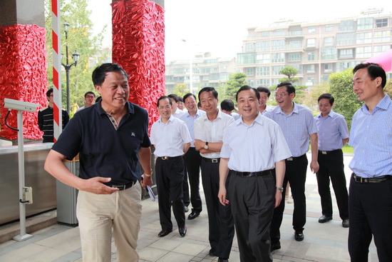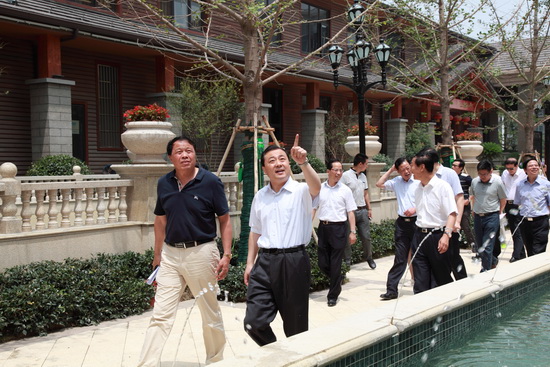2014年7月8日,揚(yáng)州市市委書記謝正義在揚(yáng)州市、邗江區(qū)有關(guān)領(lǐng)導(dǎo)及揚(yáng)州市房管局領(lǐng)導(dǎo)的陪同下視察了由新能源集團(tuán)開發(fā)建設(shè)的名門壹品小區(qū)。