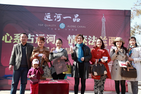 2013年11月17日上午,運(yùn)河一品售樓中心舉辦了心系古運(yùn)河,情迷法蘭西;開盤預(yù)熱活動(dòng),邀請(qǐng)了前期預(yù)約的客戶及親友前來參與,活動(dòng)匯集了購房砸金蛋;、親友助力大轉(zhuǎn)盤;、DIY花藝;、精彩表演;、精美茶歇;等多彩項(xiàng)目,客戶參與度高,互動(dòng)性強(qiáng),客戶在愉快的氛圍中得到了不同幅度的購房補(bǔ)貼,喜滿客電影票和香格里拉自助餐券,場面十分火爆。