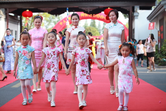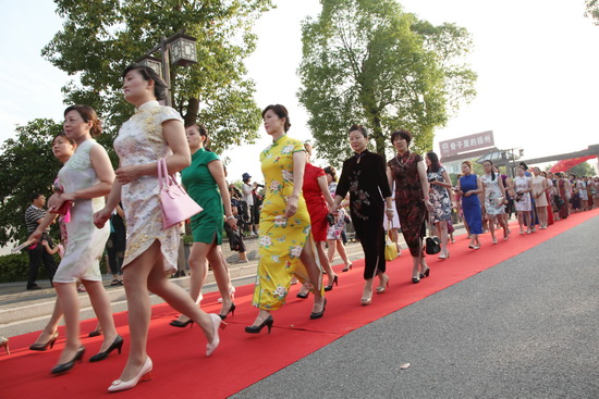 這次盛會的主題是千人秀;美賀城慶,各項活動當然緊緊圍繞城慶主題。開幕式暨我行我秀,同賀城慶;旗袍走秀入場儀式于8月22日下午4點30分在豪第坊小區(qū)門前火炬廣場舉行。上千名身著各色各式旗袍盛裝的美女們風度翩翩、身姿婀娜,踏著紅毯緩步走到長長的簽名墻前,以明星的風范揮筆留下自己的名字,參與者們掩飾不住自己興奮和激動的心情,一個個面龐上洋溢著歡樂和自豪。隨后,美女們走進豪第坊,在園區(qū)內信步漫游,瀏覽勝境,同時選擇不同的景點和不同的角度開始自拍,并且把自己的自拍靚照紛紛上傳到微信群中,揚州美、我也美;,讓參與者們分享,讓圍觀者們盡情欣賞,將城市的美麗和人的優(yōu)雅完美鑲嵌在一起,真可謂珠聯璧合。