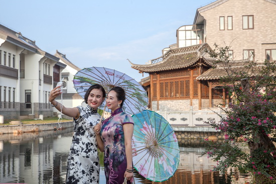 有著骨子里的揚州;美譽,由江蘇新能源置業(yè)集團打造的豪第坊,成為本次盛會舉辦地的不二之選!這座占地480畝的小區(qū),將揚州文化、蘇式園林及徽派建筑的特點融為一體,以木結構獨棟別墅和大庭院聞名,在揚州高檔別墅區(qū)中獨樹一幟。小區(qū)規(guī)模宏大,五橫三縱長達3公里的水系布滿整個小區(qū)、水面上橫臥以揚州二十四橋;為藍本的24座形態(tài)材質各異的大小橋梁,綠意森森、繁花處處、水流蜿蜒、情趣盎然,宛如世外桃源。千百位身著旗袍、風姿各異的美女徜徉在這園林勝境之中,是怎樣的一幅動人美景!