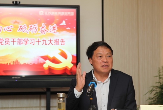 2017年10月26日下午,江蘇新能源置業(yè)集團(tuán)組織黨員干部在星座國際大廈21層會議室學(xué)習(xí)習(xí)近平總書記在黨的十九大開幕式上的報告。