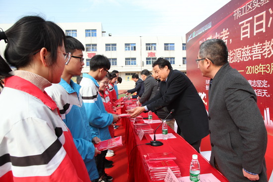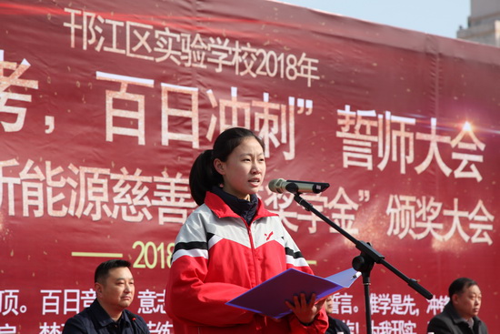 在新能源慈善教育獎學(xué)金;頒獎儀式上,江蘇新能源置業(yè)集團(tuán)董事長包廣林寄語廣大莘莘學(xué)子,懷揣夢想,奮戰(zhàn)百日,立志成才,書寫榮光。