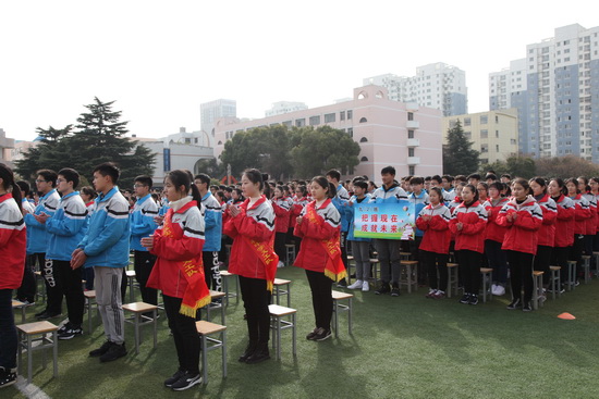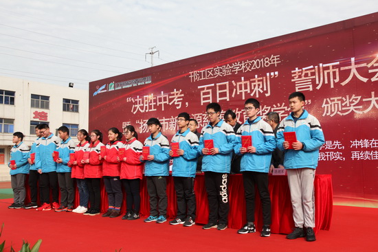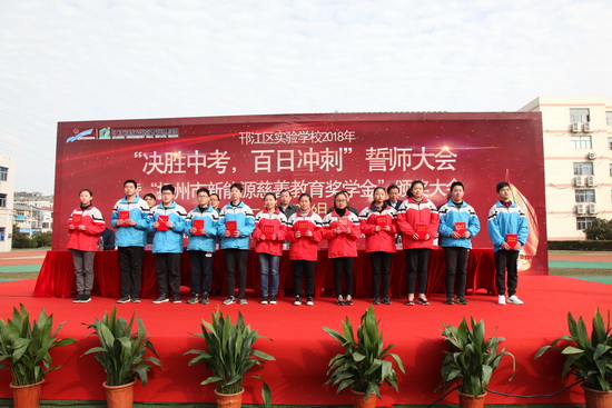 首先,邗江區(qū)實(shí)驗(yàn)學(xué)校九年級全體同學(xué)進(jìn)行奮戰(zhàn)百日、超越自我、再創(chuàng)輝煌;決勝中考宣誓。接著,一批品學(xué)兼優(yōu)的初三學(xué)生登臺領(lǐng)取新能源慈善教育獎學(xué)金,有50名學(xué)生獲得一等獎,每人獎金500元;有100名學(xué)生獲得二等獎,每人獎金300元;有200名學(xué)生獲得三等獎,每人獎金100元。本次共發(fā)獎學(xué)金75000元。