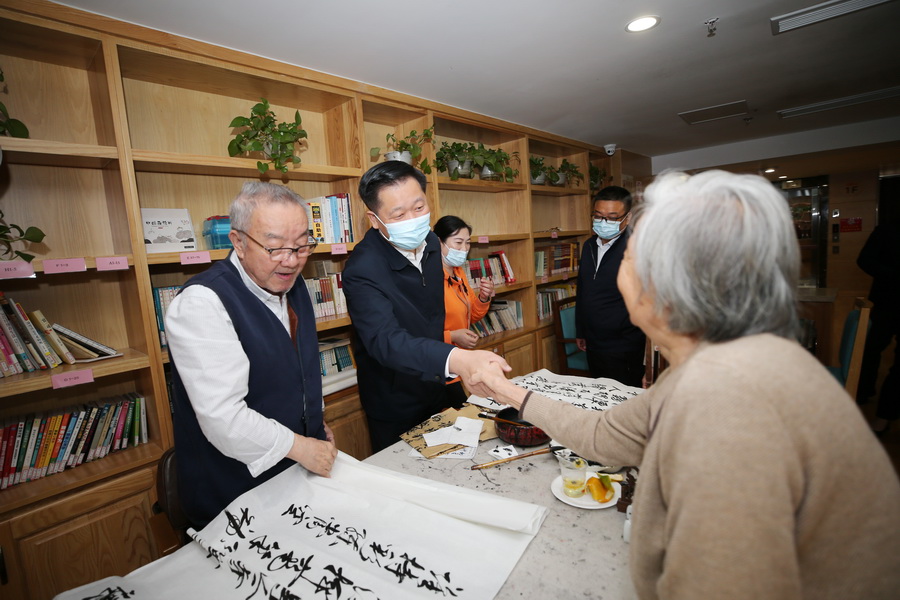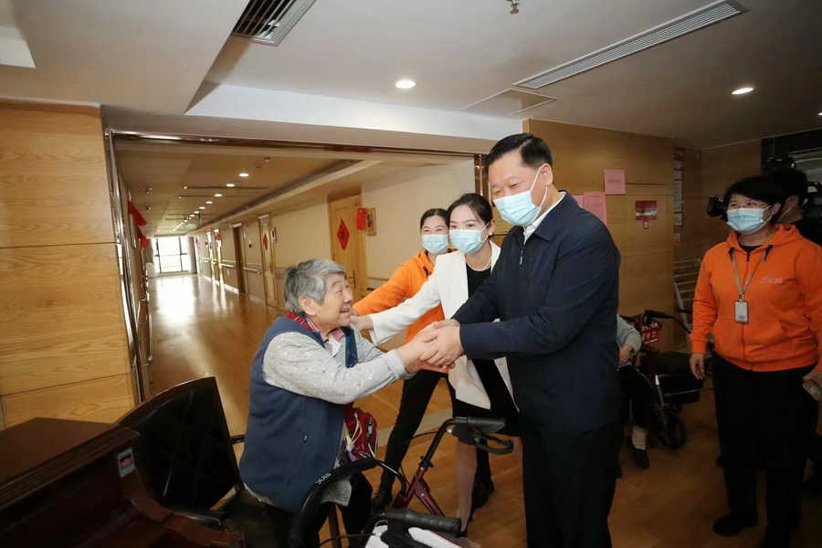 在南山公館,潘國強實地查看食堂、宿舍區(qū)、活動區(qū)、醫(yī)務室,詳細了解養(yǎng)老機構(gòu)服務保障情況,并與入住老人親切交談,祝福老人健康長壽。他要求:要進一步完善養(yǎng)老服務設施,同步做好物質(zhì)保障和精神慰藉,不斷增強老年人的舒適度、幸福感。入住長者們對潘市長的關心與祝福表示感謝。他們說:在南山公館生活非常安逸,南山公館服務人員無微不至的關心、照顧,使他們安享晚年,幸福美滿。