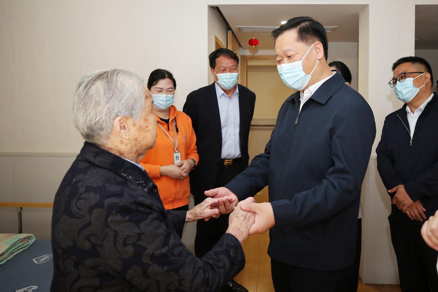10月23日是重陽節(jié),是日上午,在江蘇新能源置業(yè)集團董事長包廣林陪同下,揚州市市長潘國強赴新能源·南山公館,走訪調(diào)研,慰問長者,代表市委市政府向全市老年人致以節(jié)日問候和美好祝福。